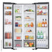 Refrigeradora Samsung Side By Side 20pc RS57DG4000M9AP, ofrece suficiente espacio para almacenar todos tus alimentos y bebidas. Su diseño interior está optimizado para organizar tus productos de manera eficiente, facilitando el acceso y evitando el desorden. Dale a tu hogar un aspecto elegante y sofisticado. El diseño pulcro y contemporáneo cuenta con una hermosa puerta plana minimalista con manijas empotradas.