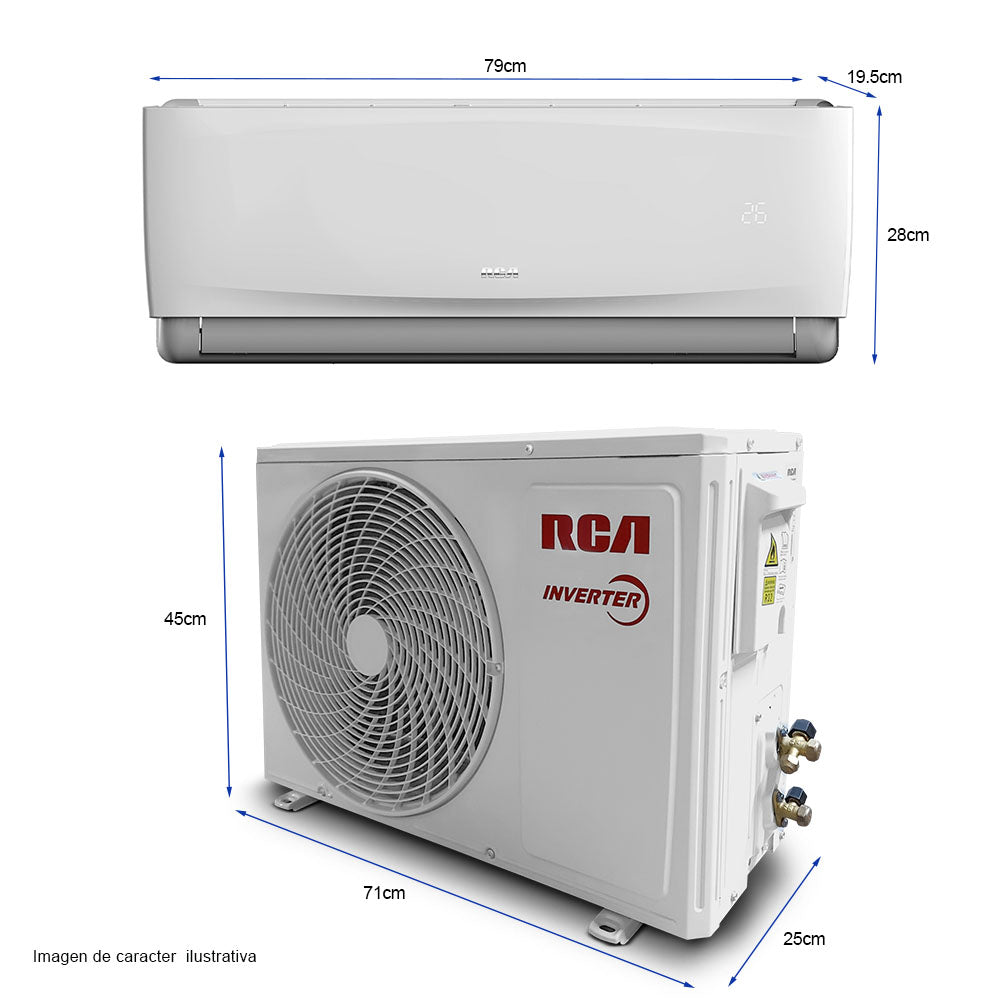 - Dimensiones unidad exterior: alto 45cm x ancho 71cm x profundidad 25cm