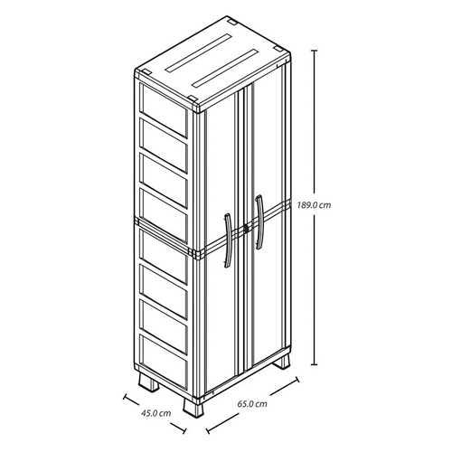 - Dimensiones: 65 cm de largo x 45 cm de ancho x 189 cm de alto