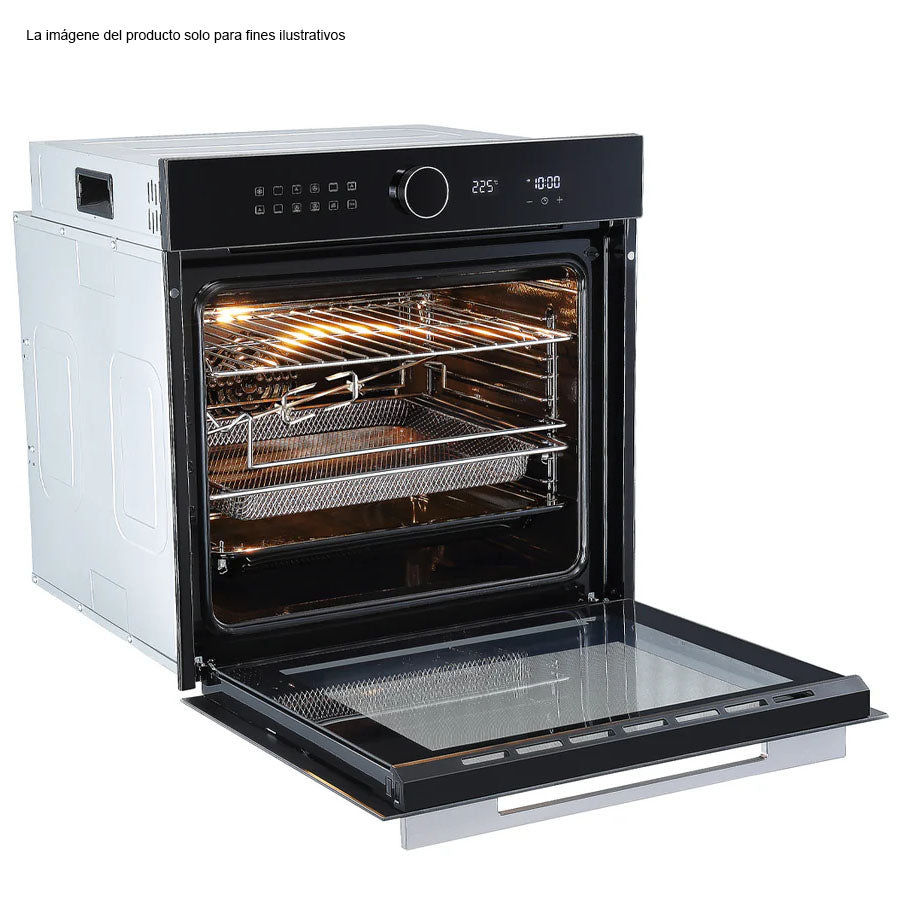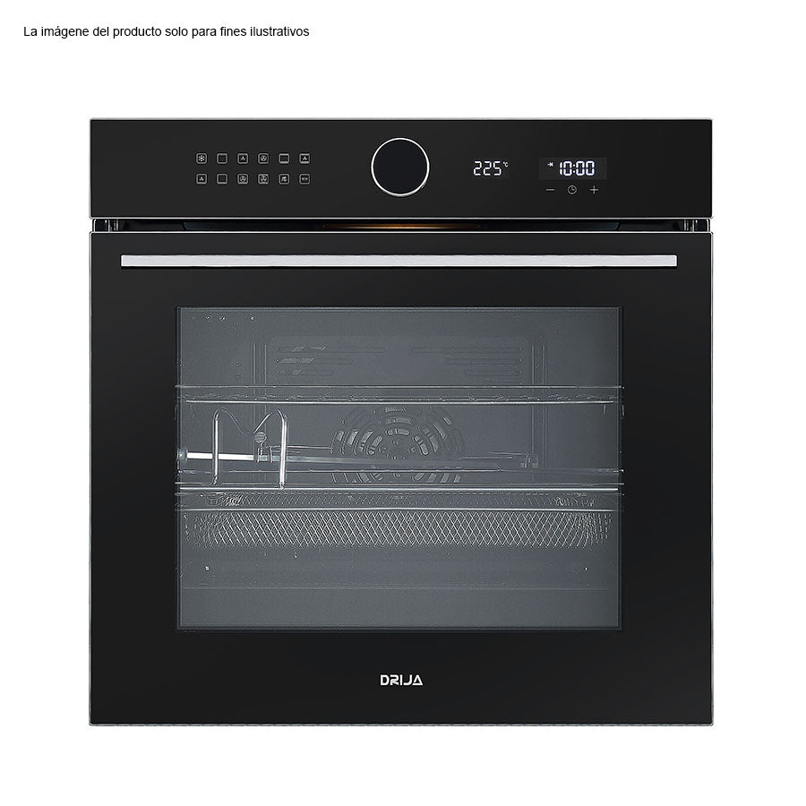 Eleva tu experiencia con el horno empotrable eléctrico Drija de 60cm INDICO 60. Con diseño elegante en color negro y puerta de triple vidrio. Se integra a la perfección en cualquier cocina moderna con capacidad de 73 litros ofrece una versatilidad culinaria sin igual.