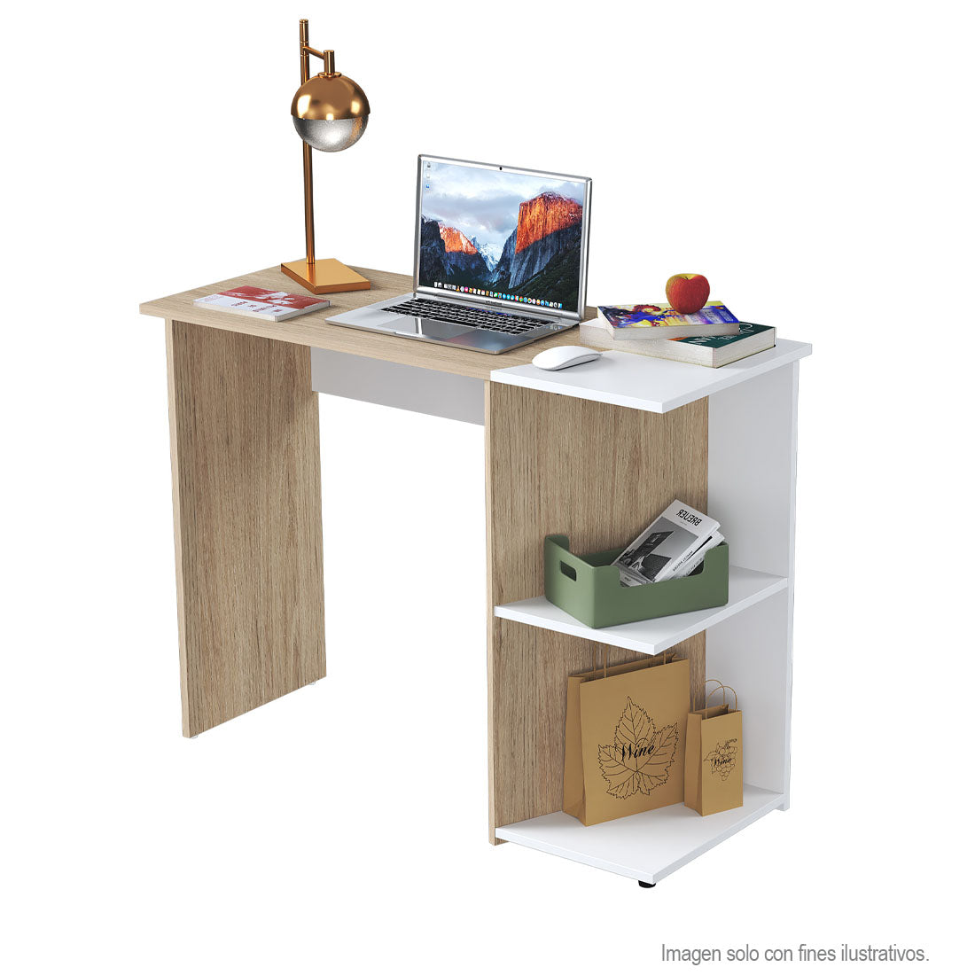 Disfruta de la comodidad, flexibilidad y versatilidad del escritorio ES23203 en color arena y blanco está perfectamente diseñado para facilitarte el espacio de trabajo en casa o la oficina y puedas organizar tus repisas con estilo y funcionalidad.
