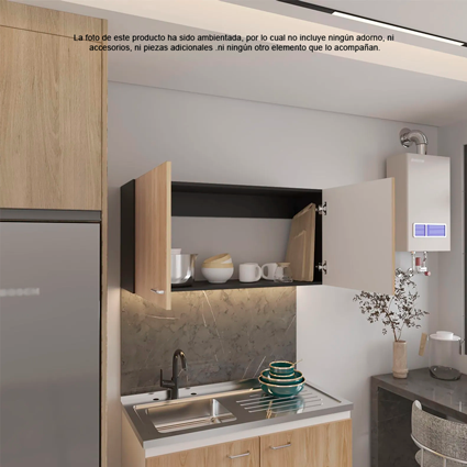 Sumérgete en la cima de la elegancia y funcionalidad con el mueble superior de cocina, elaborado en madera aglomerada MDP y recubierto con láminas melamínicas de excelente calidad. Este magnífico mueble combina estilo y practicidad para convertirse en el elemento destacado de tu cocina.