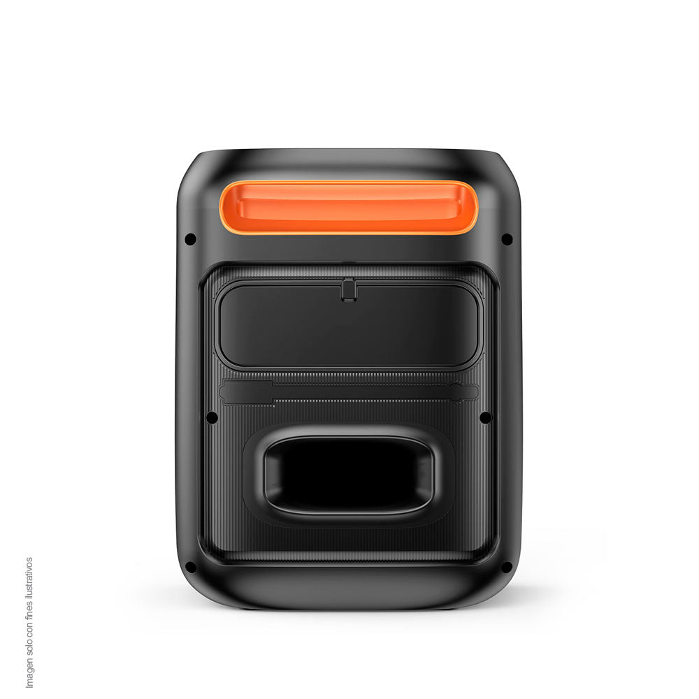 Con este parlante activo 8" cuenta con 40W RMS de potencia, luces LED, una autonomía de hasta 4 horas y manija para que puedas llevarlo y colocarlo donde más te guste. Con su elegante diseño en color negro es el compañero perfecto para los amantes de la música y entusiastas del karaoke. Su portabilidad te permite llevar la fiesta a cualquier lugar, garantizando un ambiente lleno de ritmo y diversión dondequiera que vayas. Ofrece un sonido robusto y nítido que llena cualquier espacio, grande o pequeño.