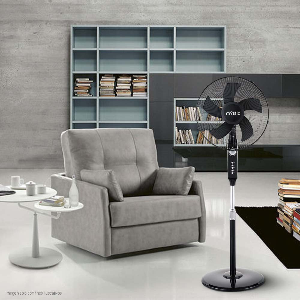 "Disfruta de una brisa poderosa y silenciosa con este abanico de pedestal de 16. Con 4 velocidades, motor de cobre ultra resistente y amplia oscilación, ofrece ajuste fácil de altura e inclinación para tu total comodidad."