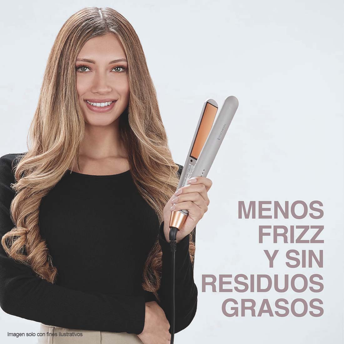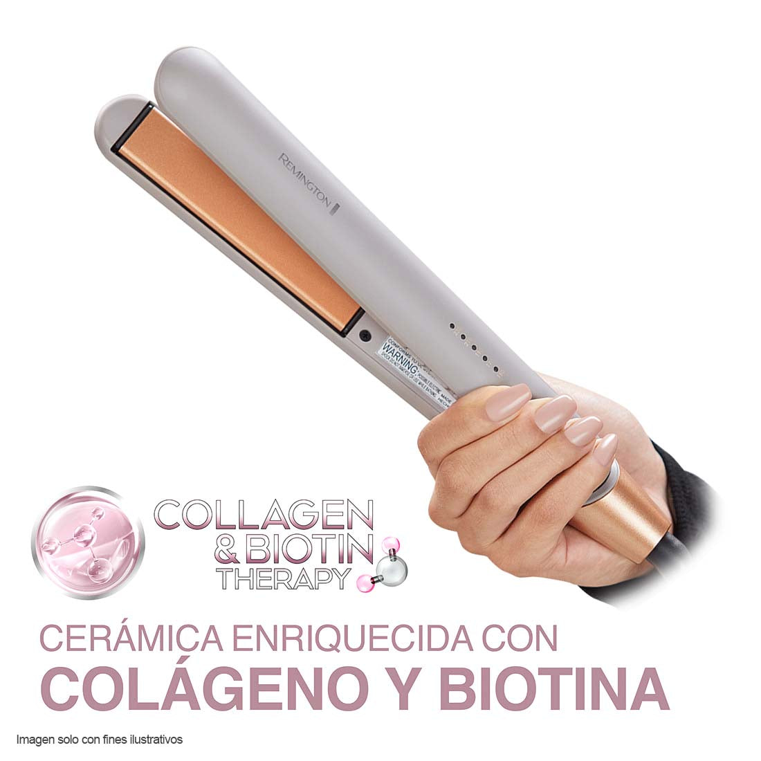 Plancha de Cabello Collagen & Biotin con Cerámica Avanzada + Colágeno + Biotina, S31A-110F. Cuida y transforma tu cabello con la plancha aliciadora de cabello, su recubrimiento exclusivo con microacondicionadores, enriquecido con colágeno y biotina, ayuda a mantener tu cabello suave, saludable y libre de frizz sin dejar residuos grasos. Disfruta de un alaciado más rápido gracias a sus placas flotantes extra largas de 110 mm, que ofrecen 4 veces más cerámica y 2 veces más deslizamiento. Logra estilos profesionales con sus 5 niveles de temperatura hasta 230 °C, calentamiento rápido en solo 15 segundos e indicador luminoso.